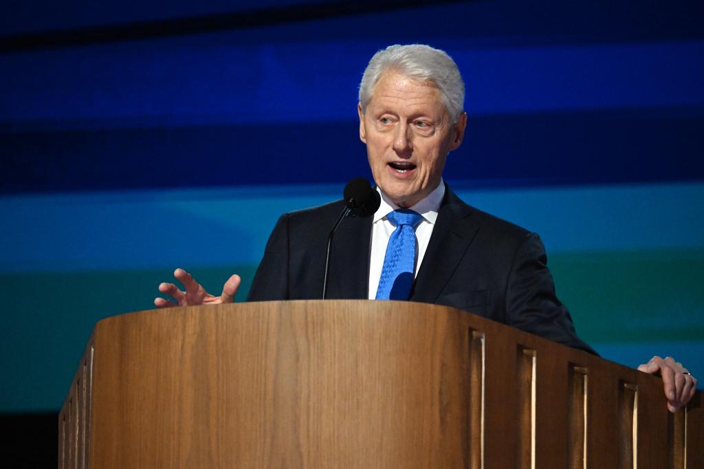 2024年8月21日,在美国芝加哥,美国前总统克林顿在民主党全国代表大会上发言。新华社记者李睿摄
