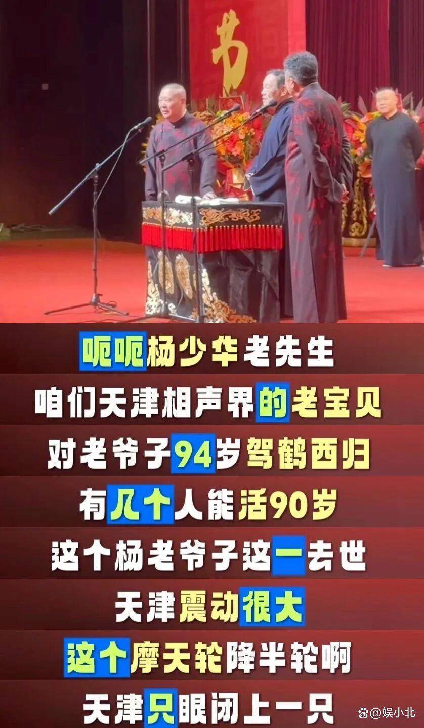 接着,郭德纲抬杨少华老先生,称其为天津相声界的老宝贝,以示尊敬。
