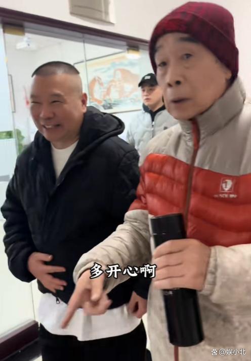 过程中,郭德纲始终落后石富宽半个身位,以表恭敬。